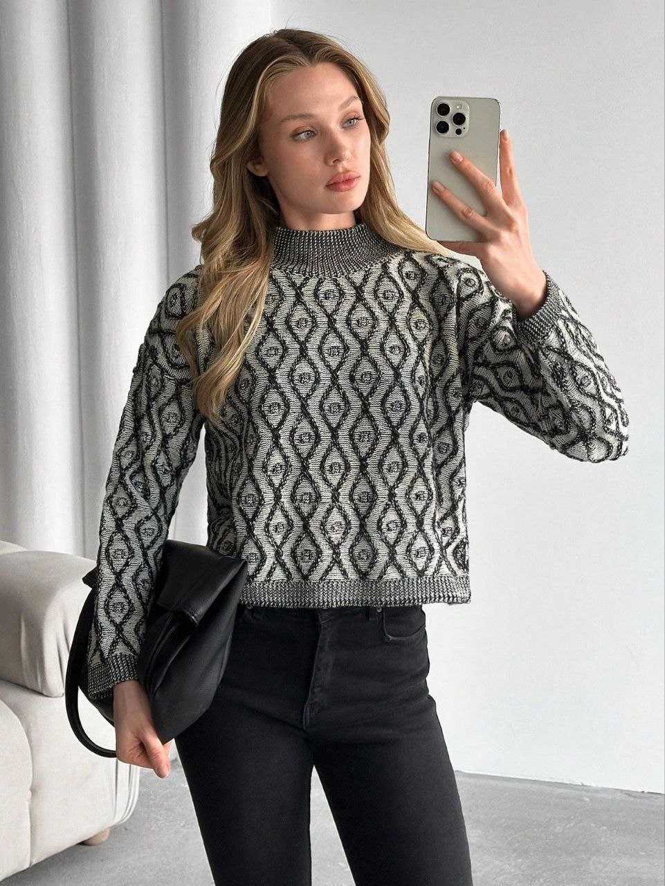 پلیور بافت الگوی هندسی وارداتی جنس ترک