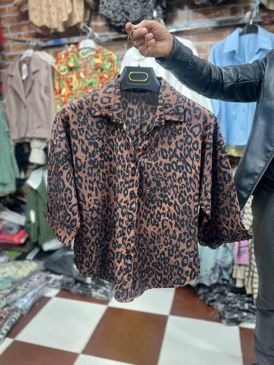 شومیز زنانە پلنگی نگین دار جنس کرپ ینزی